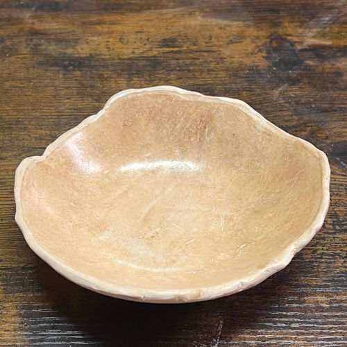 Hier steht die Schönheit und Einzigartigkeit des Materials im Vordergrund. Die Technik, die ich hier anwende heisst "Burnishing". Jedes Stück wird 4-5 Mal händisch bearbeitet. Dabei wird mit einem glatten Stein die Oberfläche komprimiert und poliert. Die Stücke werden nur niedrig gebrannt, um den seidigen, feinen Glanz nicht wieder zu zerstören. Das Bearbeiten bringt die Farben des Tons hervor. "Perfektion" ist hier ein Fremdwort, denn natürlicher Ton ist nicht so gleichmäßig und enthält Fremdstoffe, die im Brand die Oberfläche verändern.