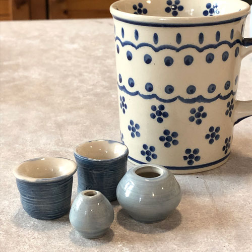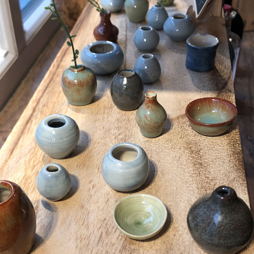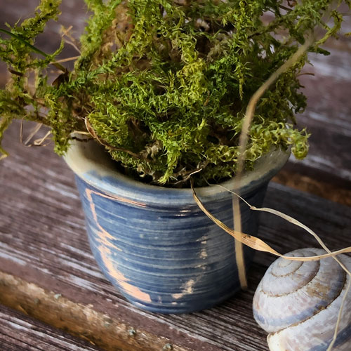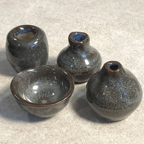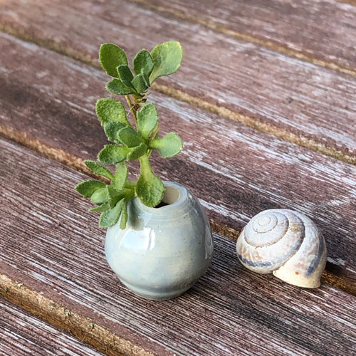 Kleinste, auf einer kleinen Töpferscheibe gedrehte, Porzellan-Väschen, -Schälchen und -Töpfchen. Liebevoll mit Seladon glasiert. Nur etwa 3-4cm gross. Jedes ein Einzelstück, daher am besten im Geschäft aussuchen oder ich schicke ein Foto mit den aktuellen Stücken, bitte per Email anfragen.