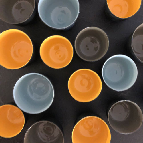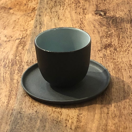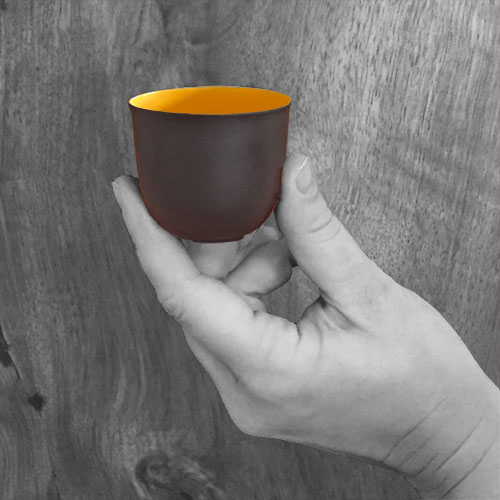 Tasse "Nero": aussen aus edlem, unglasierten schwarzen Porzellan, innen in drei verschiedenen Farben (Sonnengelb, Jade, Taupe) erhältlich.