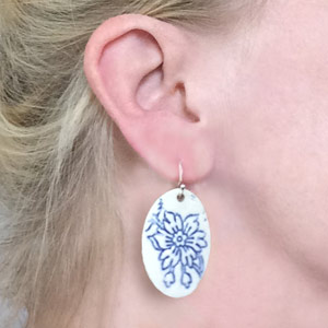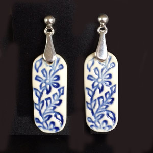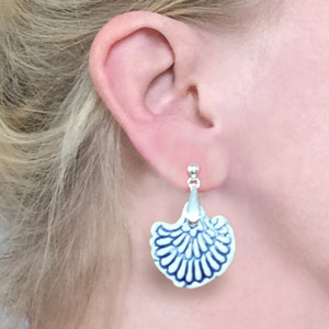 Ohrhänger aus Porzellan auf Sterling-Silber montiert in verschiedenen Designs und Größen, passend zu den Anhängern der "Classic"-Serie. Zwei verschiedene Aufhängungen sind möglich: geschwungener Haken oder Stecker. Rundum glasiert. In Geschenkbox.