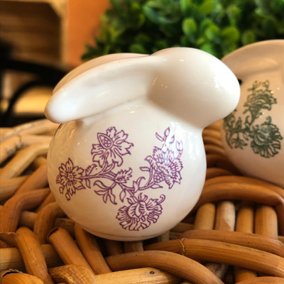 Kleine Porzellanhasen aus Deutschland mit dem original Ausseer Porzellan Design in den Ausseer Farben (rosa, lila, grün) oder blau verziert. Ca 6x6x6cm, mit angelegten Ohren oder einem aufgestellten Ohr. Das Design wird mit bunter Glasur unter eine Transferschicht gedruckt, händisch aufgebracht und bei 800 Grad eingebrannt, daher spülmaschinenfest. Jeder Hase ist ein Unikat mit liebevoll ausgewählten Details.