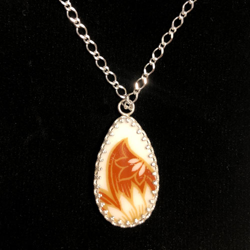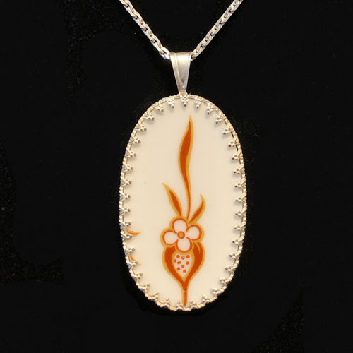 Verkauft. Nr 023: Rostfarbener floraler Anhänger ca 5cm lang. Rosenthal ca 1945. Sterlingsilberfassung, ohne Kette. € 109,-