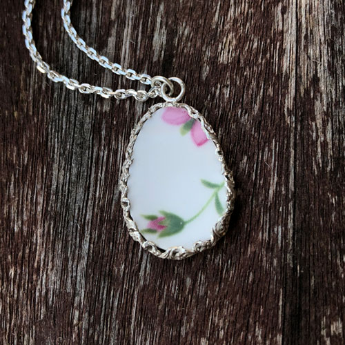 Verkauft. Nr 014: Rosenknospe, Queen's China, ca 3cm. Sterlingsilbergefasst, ohne Kette. € 86,-