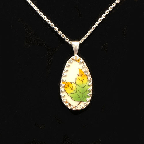 Nr 028: Kleiner ovaler Anhänger "Blättchen" ca 3cm, Sterlingsilberfassung. Herend "Queen Victoria". Ohne Kette. € 86,-