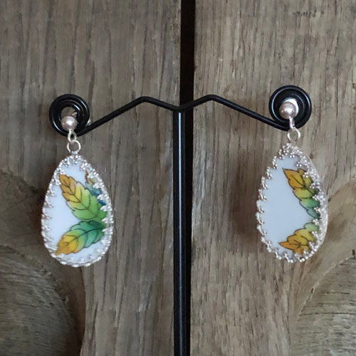 Nr 037: Ovale Ohrhänger "Blättchen" ca 3cm, Sterlingsilberfassung. Herend "Queen Victoria". € 156,-