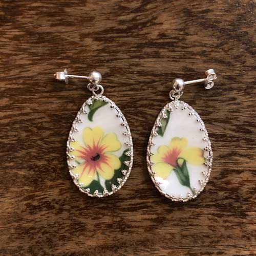 Nr 036: Primel. Queen's China. Sterlingsilbergefasste und -montierte ovale Ohrringe ca 3cm. € 156,-