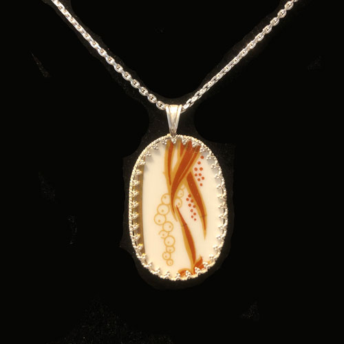Verkauft. Nr 022: Rostfarbener, ovaler silbergefasster Kettenanhänger ca 3cm. Ohne Kette. Rosenthal ca 1945. € 86,-