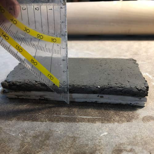 Egal. Ausprobieren. Für das Schachbrettmuster mit angestrebeten ca 1cm grossen Feldern werden zuerst 1cm dicke Scheiben von beiden Sorten aufeinander gelegt. Dann 1cm dicke Streifen daraus geschnitten. Diese werden mal so rum, mal so aufeinander gestapelt und davon wieder Streifen geschnitten. Diese werden schliesslich zu einer Platte zusammengelegt.
